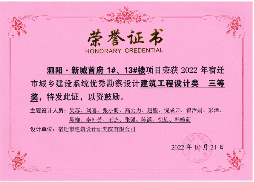 我院在宿遷市2022年度優(yōu)秀勘察設(shè)計(jì)項(xiàng)目評(píng)選中喜獲獎(jiǎng)項(xiàng)